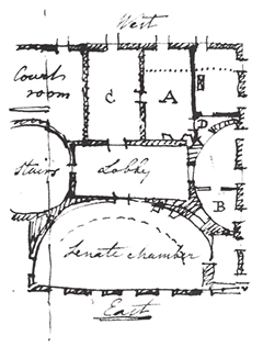 It was therefore my intention to have laid before you a plan of division of the rooms on the ground floor in order to attain these wishes previously to any thing being done. But a discovery which I made in the room marked A, heretofore the Clerks office & in which the Senate sat last Session, obliged me to order immediate proceedings.—