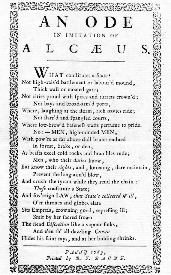 “Remarks” and “Information,” which were both produced in English and French editions, were not printed until sometime around March.1 This was the period when Franklin was printing, as keepsakes for his friends, the shorter jeu d’esprits that he had written over the years of his residence at Passy and now gathered under the title “Bagatelles.” “Remarks” and “Information” were included in that collection.2 Unlike the other bagatelles, however, which were only distributed to his circle of intimates, Franklin intended “Information,” and probably also “Remarks,” for a wider audience.